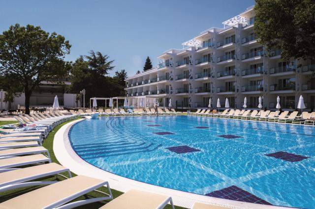 Vstupná hala s recepciou, lobby bar, reštaurácia, reštaurácia à la carte. V záhrade bazén (lehátka a slnečníky pri bazéne zadarmo), detský bazén s mini-aquparkom, burger bar pri bazéne.
