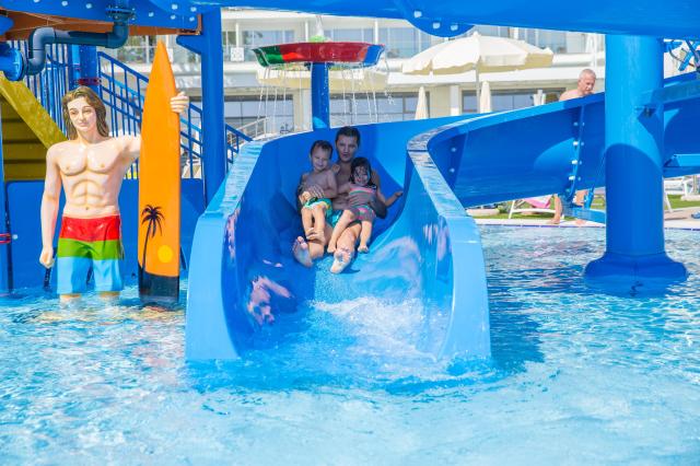 Šmykľavka, bazén so šmykľavkami, ihrisko, miniklub, detská postieľka zdarma (na vyžiadanie).