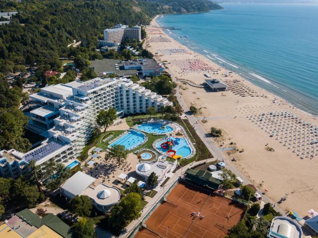 V centre letoviska Albena s mnohými obchodmi a reštauráciami. Letisko Varna vzdialené 40 km.