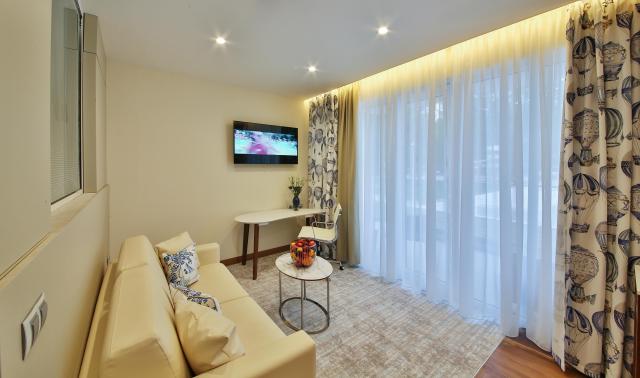 Dvojlôžková izba: kúpeľňa/WC (sušič vlasov), klimatizácia, TV/sat., telefón, minibar (za poplatok), trezor (za poplatok), set na prípravu kávy a čaju, balkón alebo terasa.